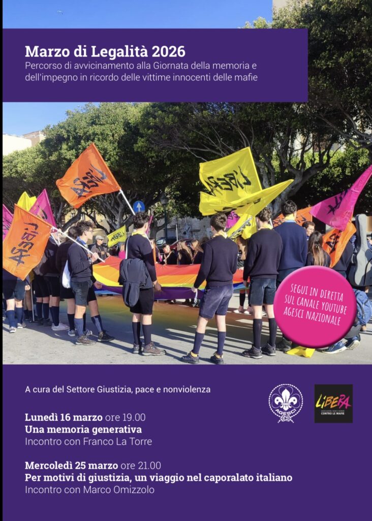 Carissime capo e carissimi capi, lupetti e coccinelle, esploratori e guide, rover e scolte della Puglia, in questo momento in cui continuano e si intensificano le guerre nel mondo, non cessano quelle in Palestina e in Ucraina, la nostra Associazione ci riporta all’attenzione che è arrivato il momento di agire per la pace, sui nostri territori, insieme a tutti gli uomini e le donne di buona volontà.